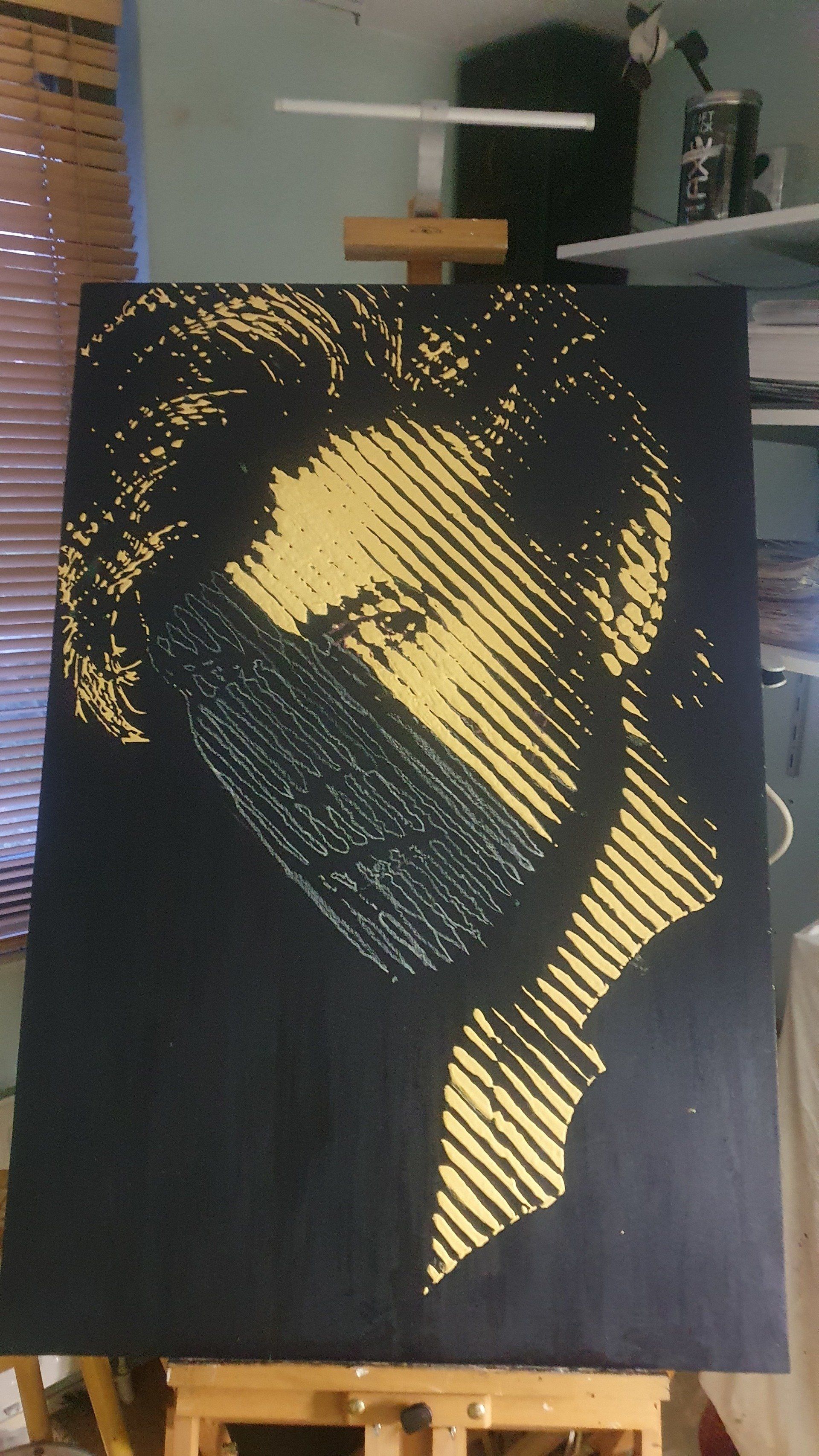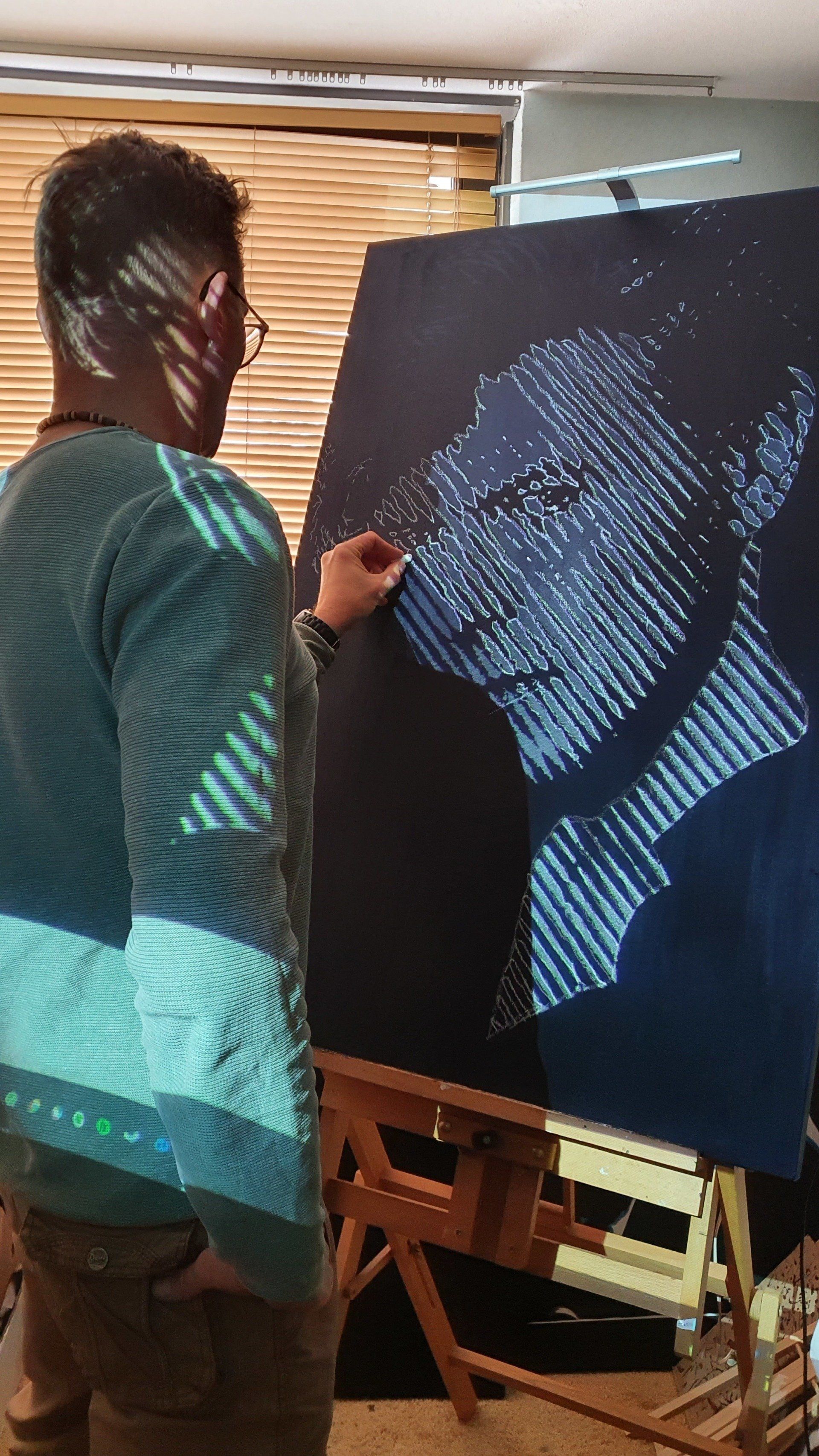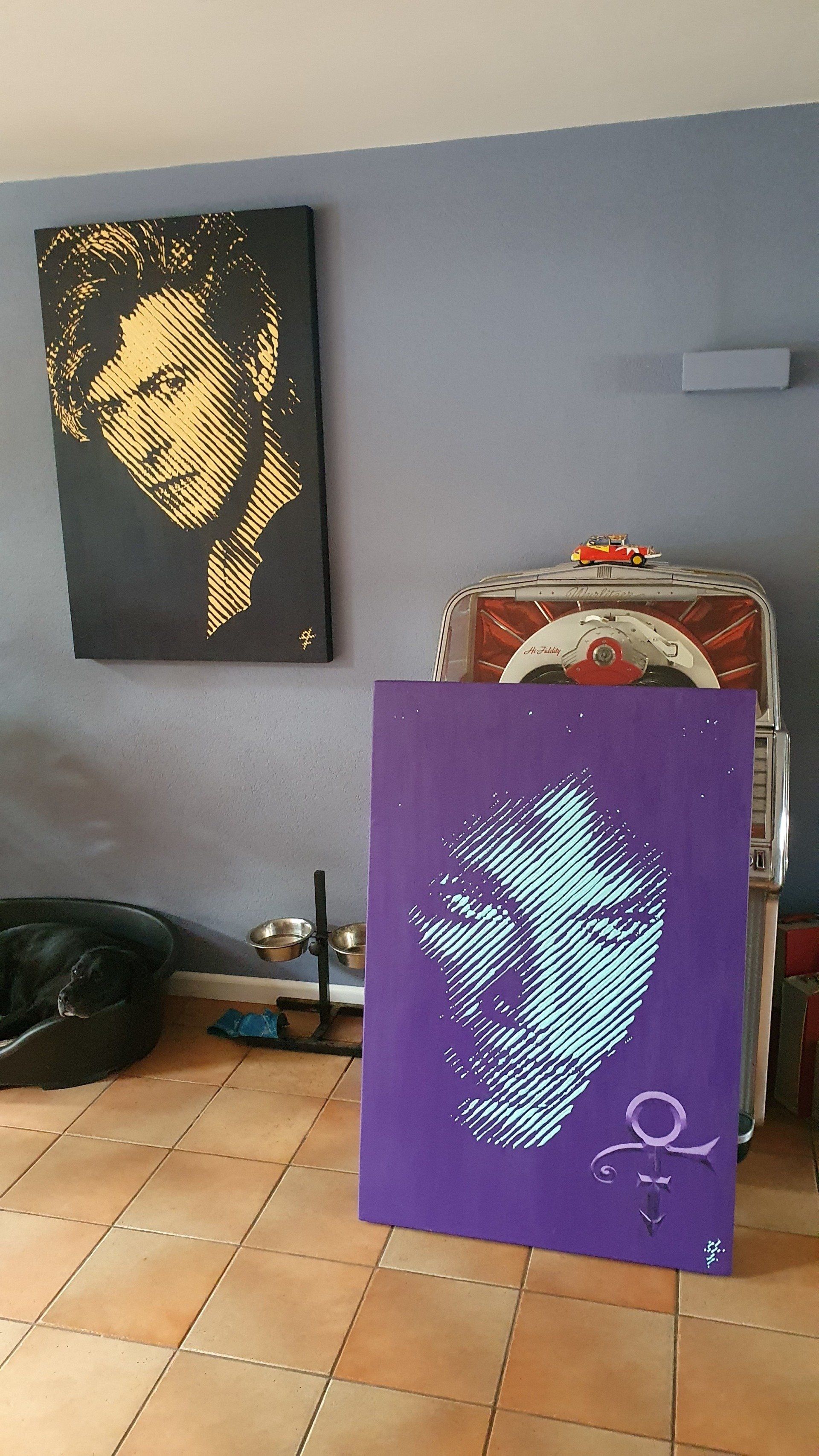 Not the obvious ones like the Aladdin Sane red flashed face or the Heroes cover.. The young Bowie, the older Bowie? I ended up with a protrait of 1987. And after all the reason became clear to me: of course it is the look in his eyes that grabbed me, but in 1987 I visited a Bowie concert for the first time: the Glass Spider Tour in De Kuip in Rotterdam. This is MY Bowie, the one I had to make!