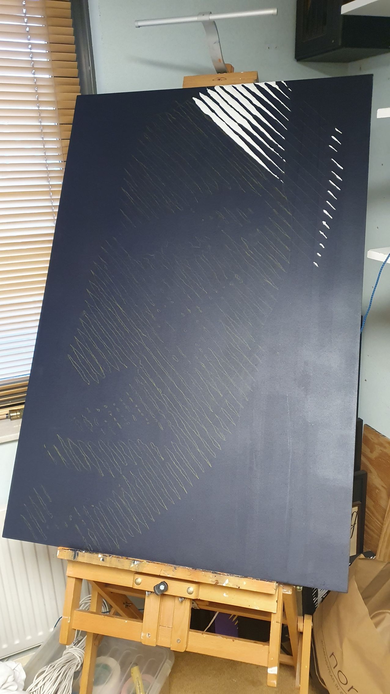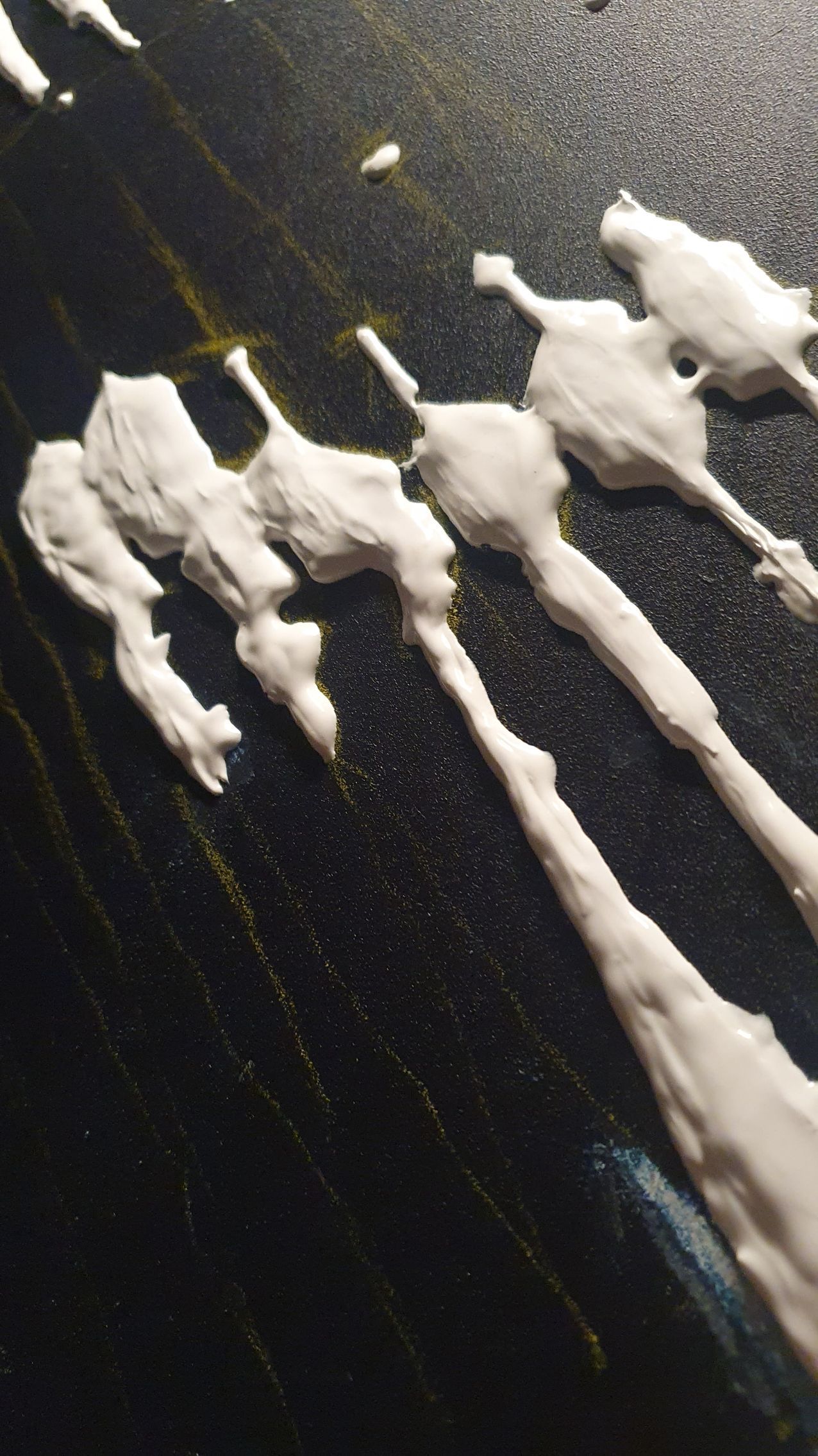 Details: 80x120x5cm, Acrylic-on MDF, White-on-Blue