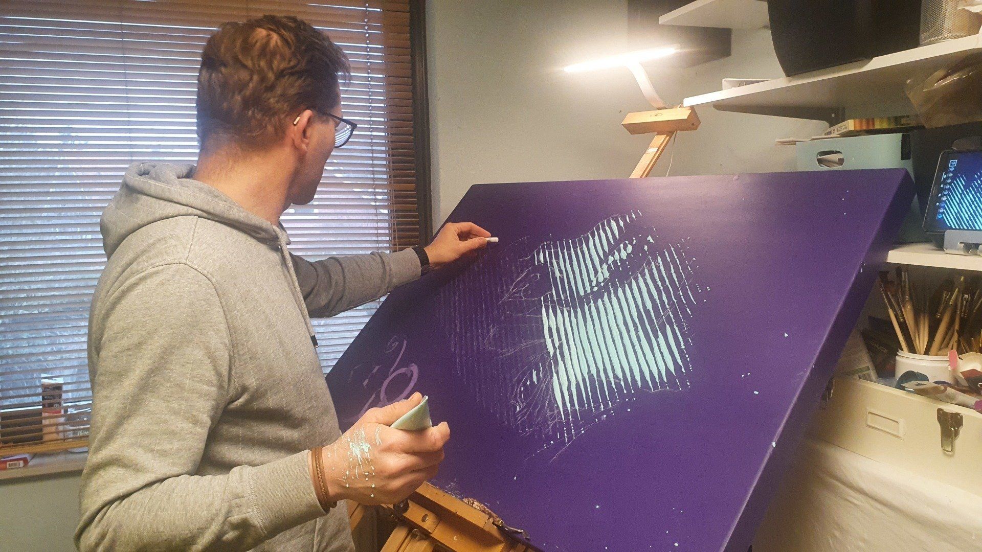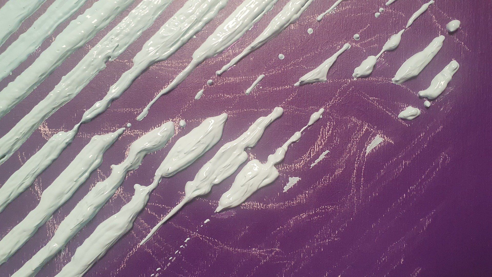 Details: 80x120x5cm, Acrylic-on MDF, Mint-on-Purple