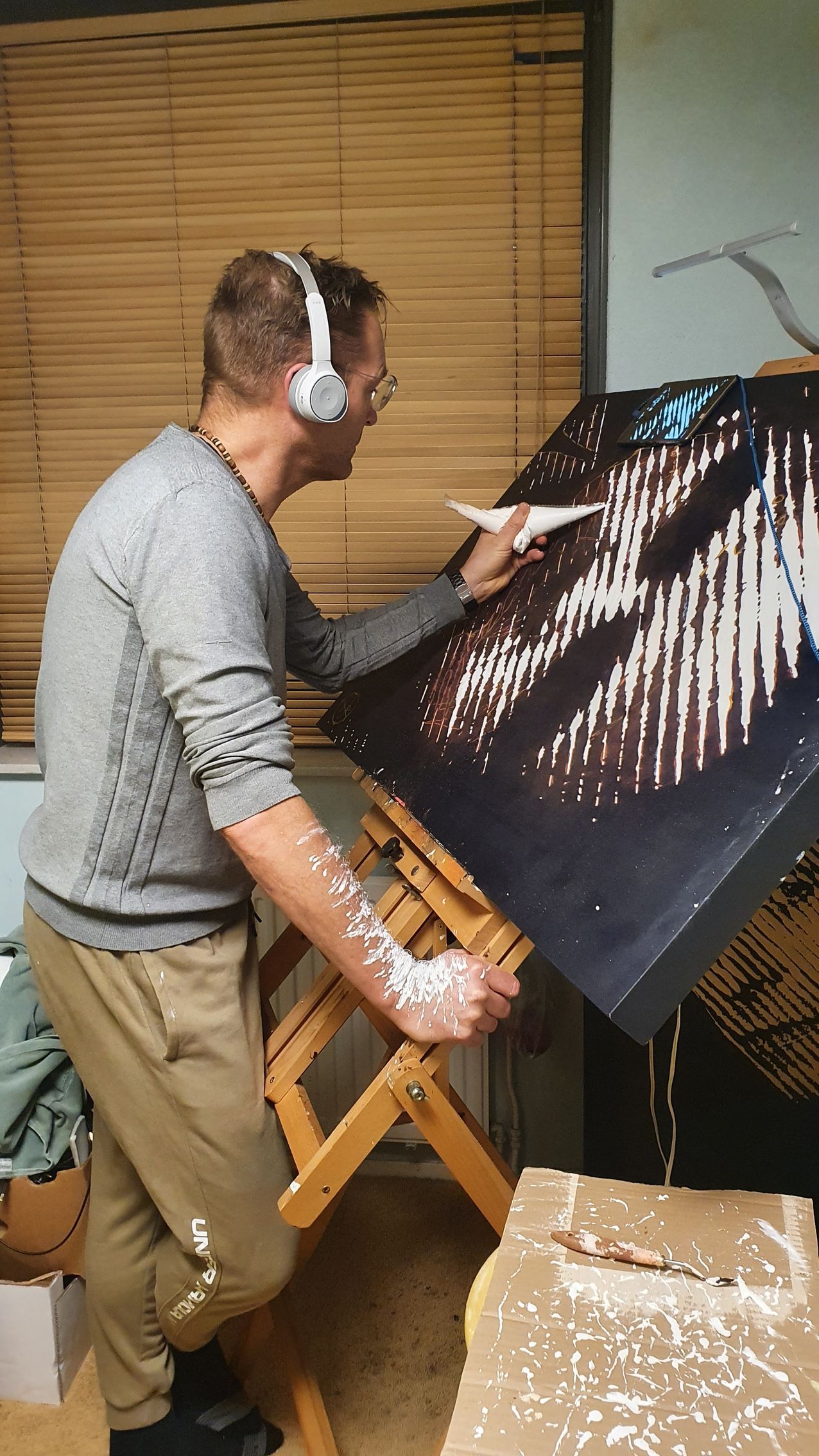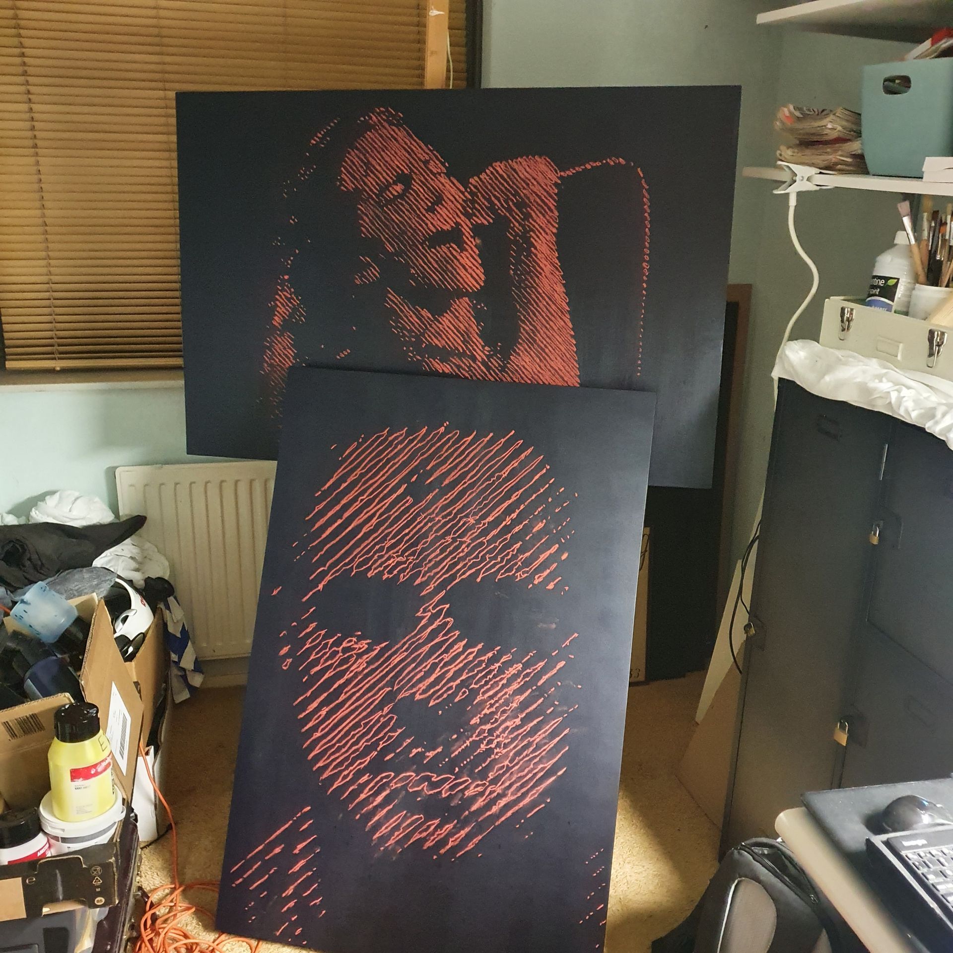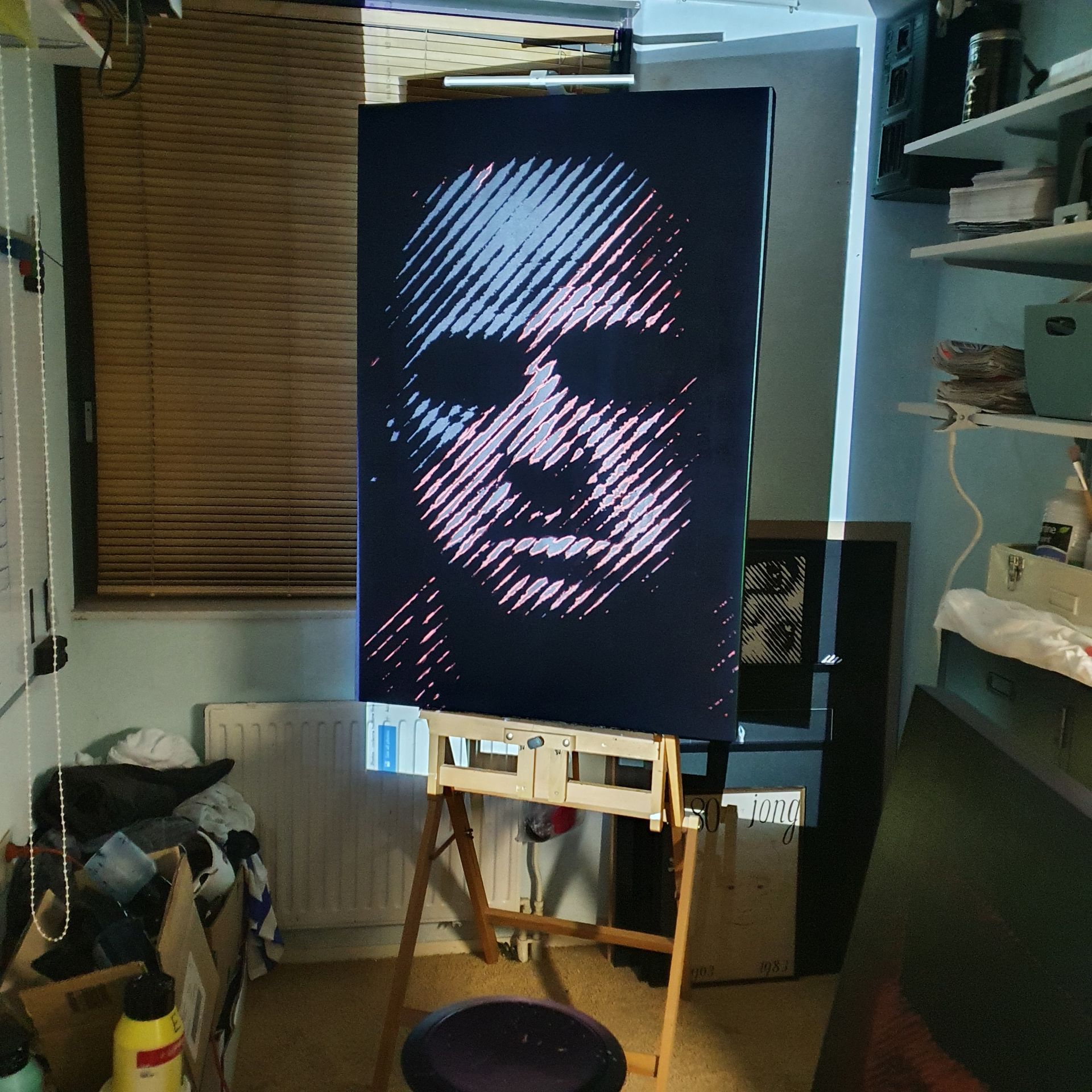 Details: 80x120x5cm, Acrylic-on MDF, White-on-Black