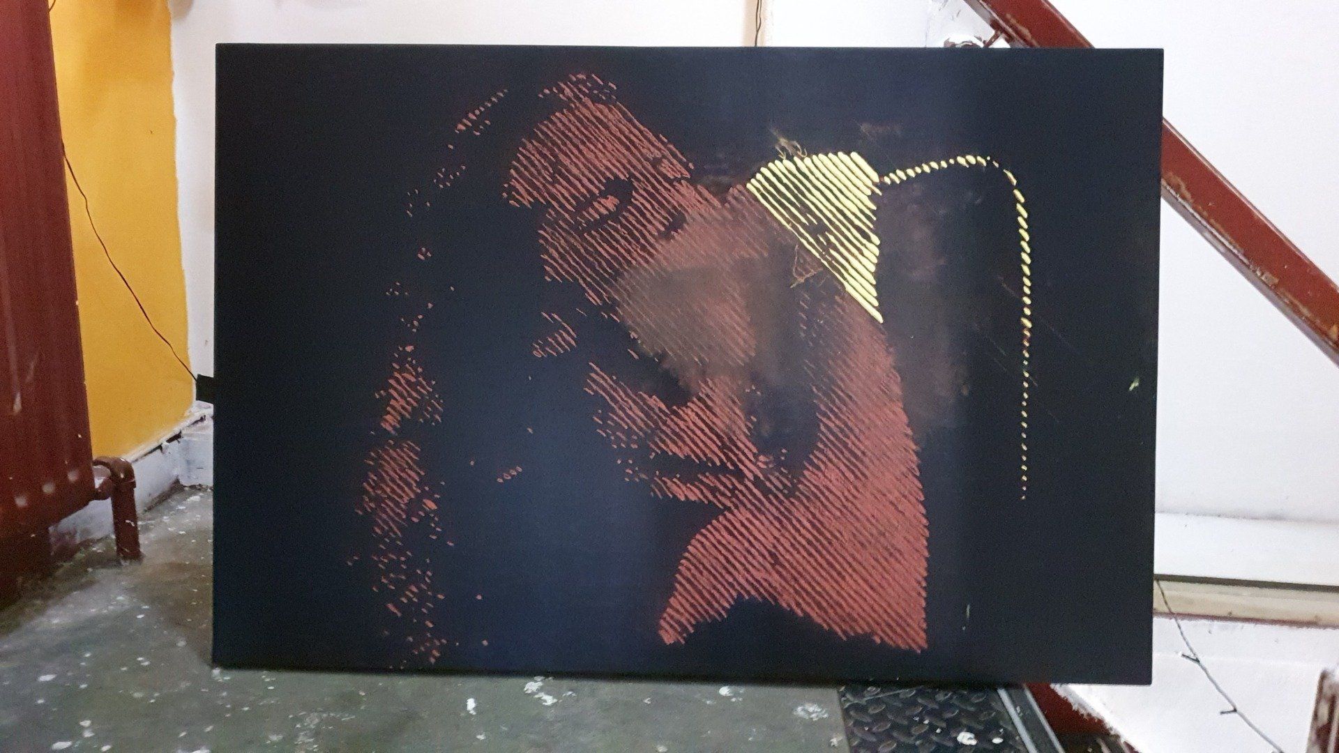 Details: 120x80x5cm, Acrylic-on MDF, Yellow-on-Blue